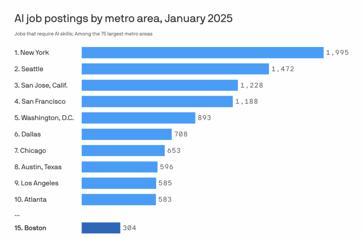 Good to see this new estimate showing that roughly 300 artificial intelligence jobs were posted in Boston in January alone. Hey Boston, let's climb that ladder a bit more, we can/should do better!