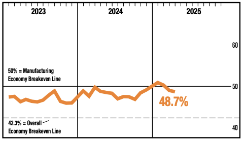 The Manufacturing PMI Index contracted for the second straight month in April, slipping to 48.7%—a 0.3-point decline from March's reading.